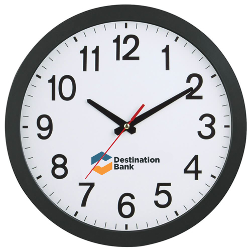 - Slim 12" diameter wall clock features choice of metallic silver or black frame