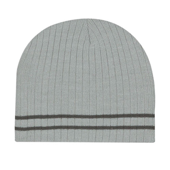 Ribbed Knit Beanie With Double Stripe
